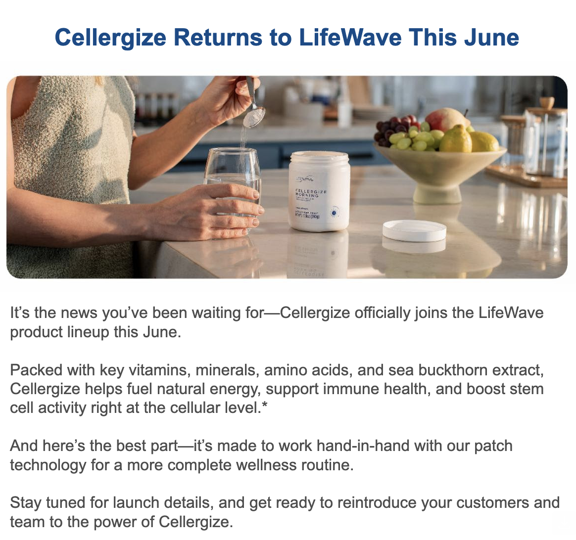 It's an honor to share with you, reminder of a few announcements you already received from us via LifeWave's corporate email to you here and on last month's shows.