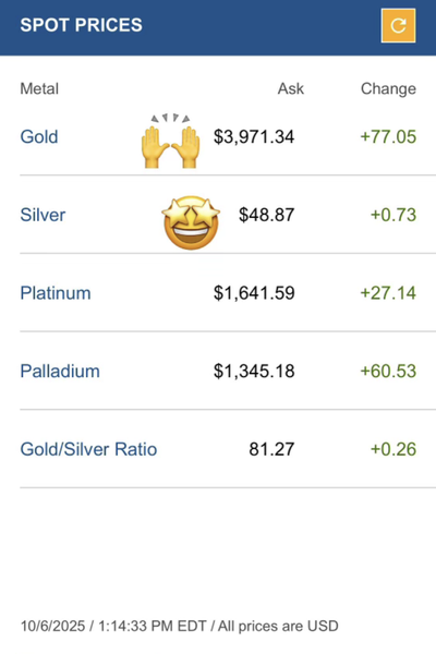 As I reported on Send It Sunday show about 4 weeks ago when Gold had crossed $3,452/oz, I showed all data proving Gold would vault a few to $4,000/oz by October 1st...well, I'm off a few days because this morning Gold nearly kissed $3,971/oz. (The day's not over either!) This asset was
